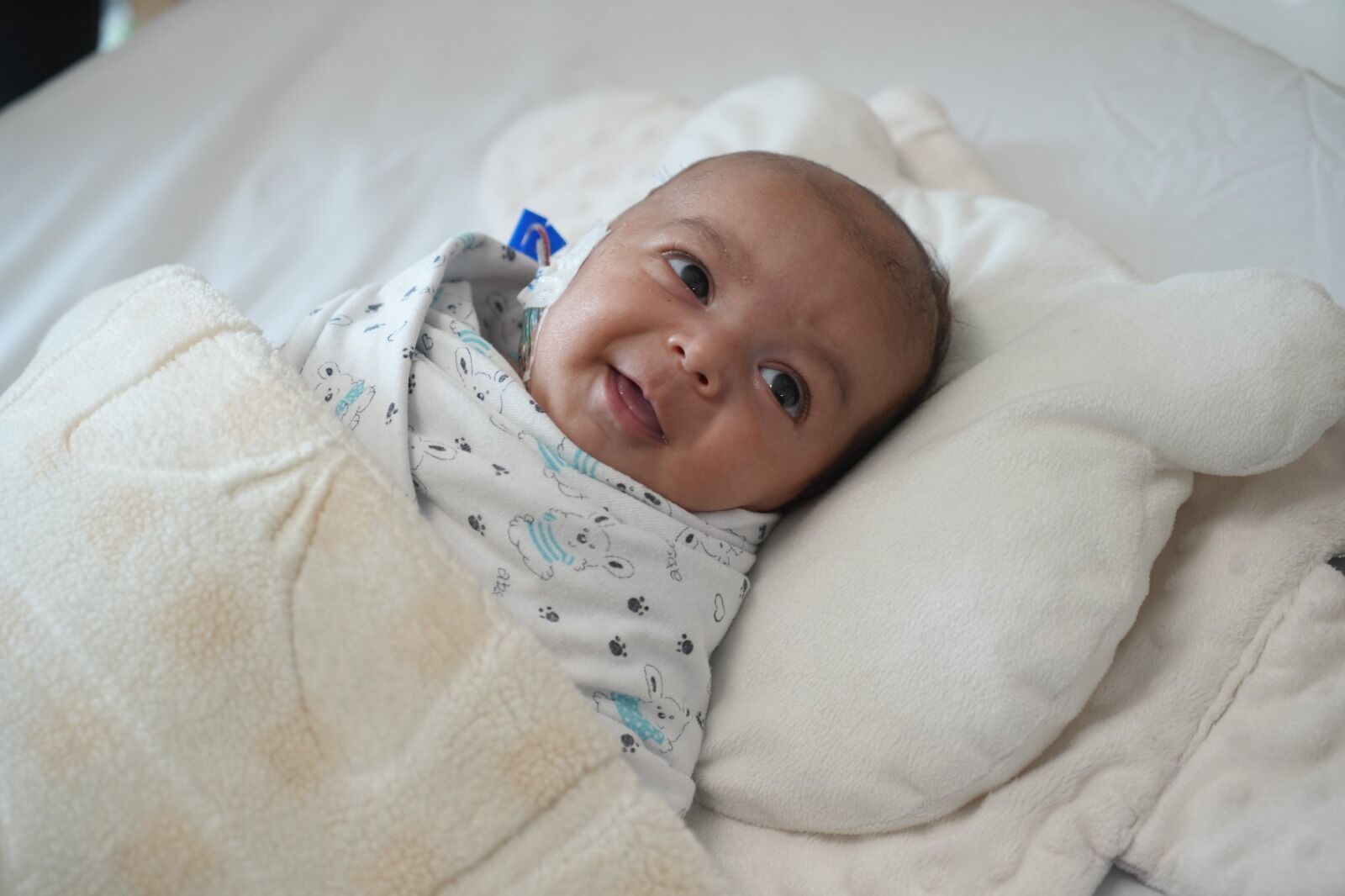 Ailenin başvurusu üzerine Talha bebek, hastanede tedavi altına alındı. Beyin ve Sinir Cerrahisi Kliniği'nde görev yapan Op. Dr. Ali Yayla ve ekibi tarafından gerçekleştirilen detaylı değerlendirmelerin ardından ameliyat kararı verildi. Tümörün büyüklüğü ve hastanın yaşının küçük olması sebebiyle 4 saat sonunda başarılı geçen ameliyat sonucunda nadir görülen tümör başarıyla çıkarıldı. Ameliyatın ardından yoğun bakımda yakından takip edilen Talha bebek, kısa sürede toparlanarak sağlığına kavuştu.