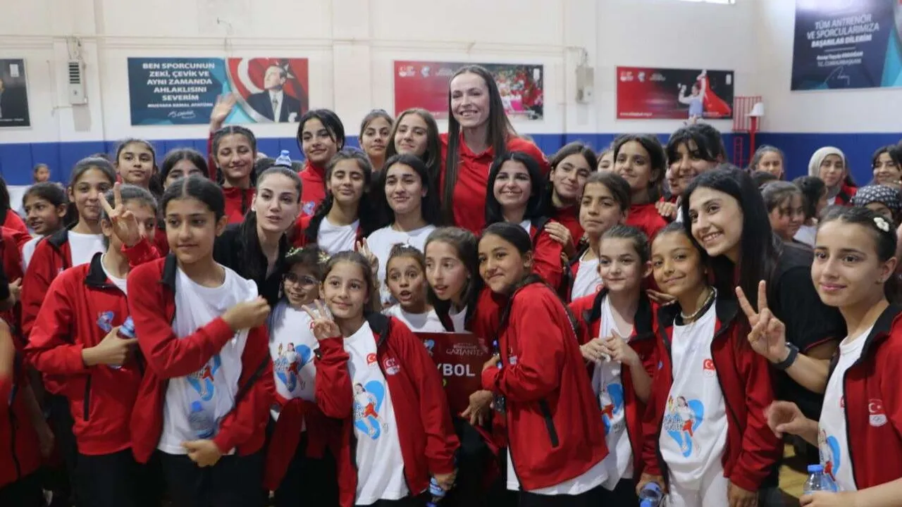 TMOK'un "Sporla Güçlen" projesi kapsamında Gaziantep Büyükşehir Belediyesi ev sahipliğinde Ulaş Spor Salonu'nda düzenlenen etkinlikte yer alan A Milli Kadın Voleybol Takımı Kaptanı Eda Erdem Dündar, çocukların yoğun ilgisiyle karşılaştı.