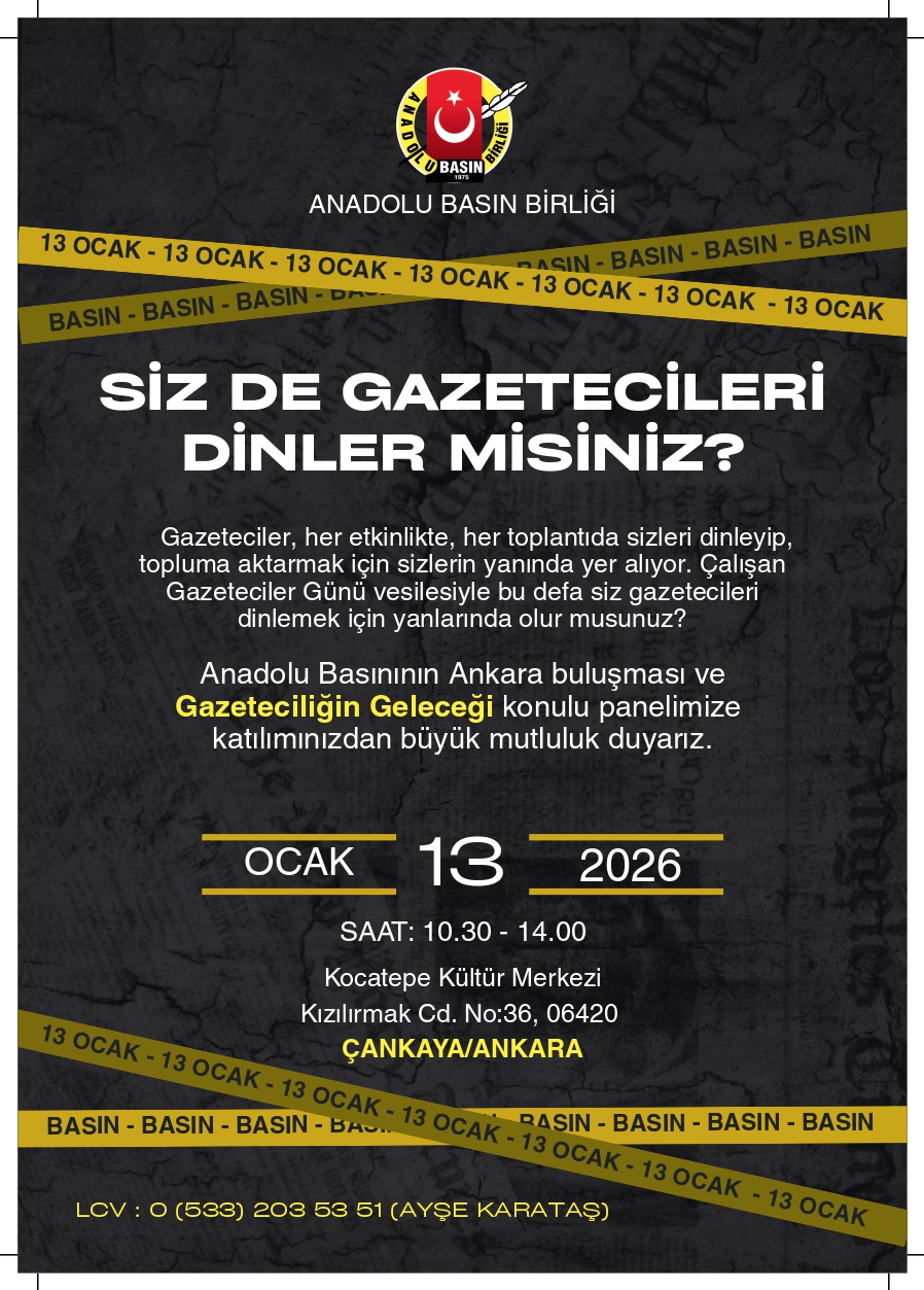 Anadolu Basın Birliği, 13-14 Ocak tarihlerinde Ankara’da gerçekleştireceği etkinlikte basın mensuplarını bir araya getirmeye hazırlanıyor. Yaygın basından ünlü isimlerin “Gazeteciliğin Geleceği”ni konuşacağı panelde, yerel basın mensupları da sorunlarını siyasetçilere aktarma imkanı bulacaklar.