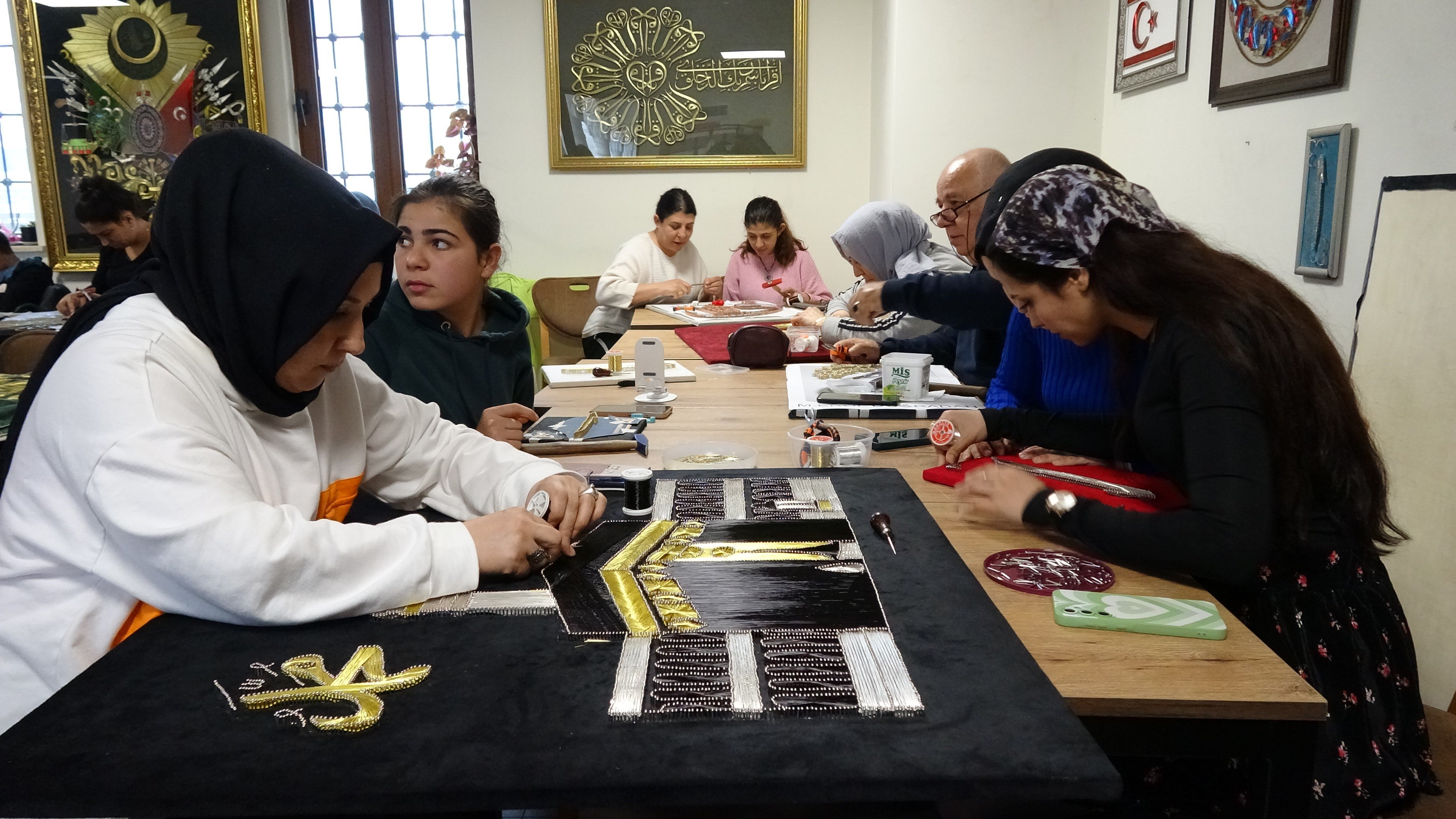 Sürekli ilaç kullanan ve evden de kolay kolay çıkmayan Beyza Nur Küçüktürkmen, bir yıl önce mahallelerindeki Şahinbey Millet Camii ve Külliyesi içinde yer alan filografi kursundaki kadınların yaptıkları tabloları tek tek inceledi.
