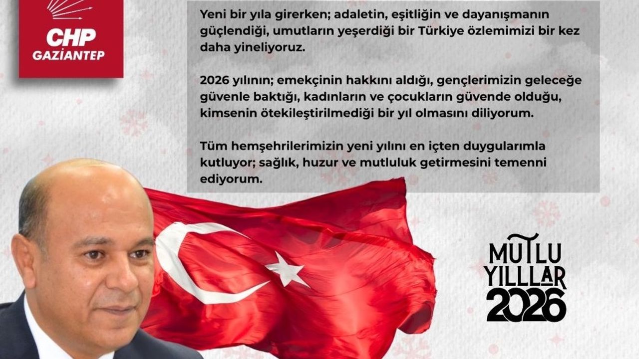 Vakkas Açar, 2026’ nın ekonomik zorlukların, adaletsizliğin ve toplumsal kutuplaşmanın ortadan kalktığı bir yıl olması dileğiyle yayımladığı mesajında,” Sevgili Gaziantepliler, değerli yol arkadaşlarım; 2025 yılı, ne yazık ki Türkiye’ ye iyi gelmedi. Ekonomide kötüye gidiş daha da derinleşti. Derin yoksulluk ve önlenemeyen hayat pahalılığı ülkemizin her köşesini sardı. Yeni asgari ücret tarihte ilk kez açlık sınırının altında kaldı. Geride bıraktığımız zorlu yılda; göreve geldiğimiz ilk günden itibaren emekçinin, emeklinin, esnafın, gencin, kadınlarımızın insanca yaşam sürmeleri, ranta, talana ve doğa kıyımına karşı sesimizi yükselterek artık değişim vaktinin geldiğini haykırdık” dedi.
