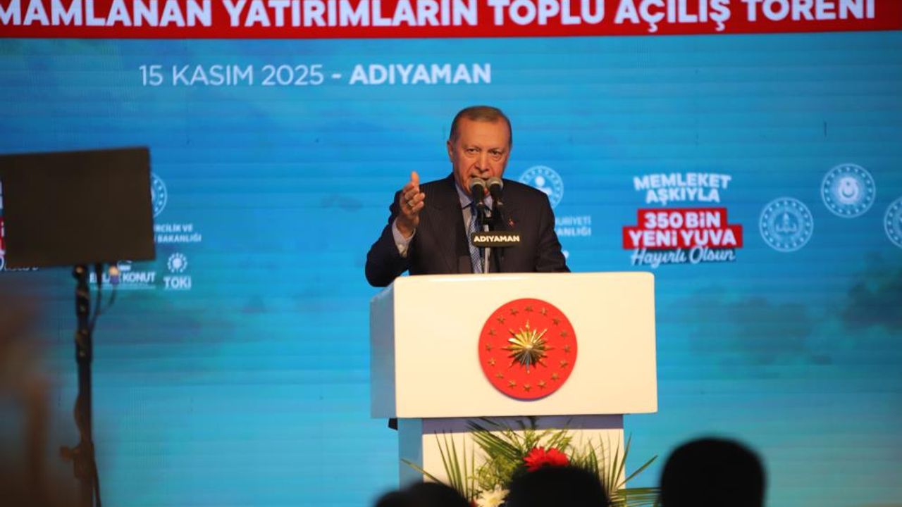 Cumhurbaşkanı Recep Tayyip Erdoğan, Adıyaman’da düzenlenen 350 bininci deprem konutu anahtar teslimi töreninde yaptığı konuşmada, "11 ilimizde toplam 350 bin 178 bağımsız bölümün anahtarlarını hak sahibi kardeşlerimize takdim etmiş oluyoruz" dedi.