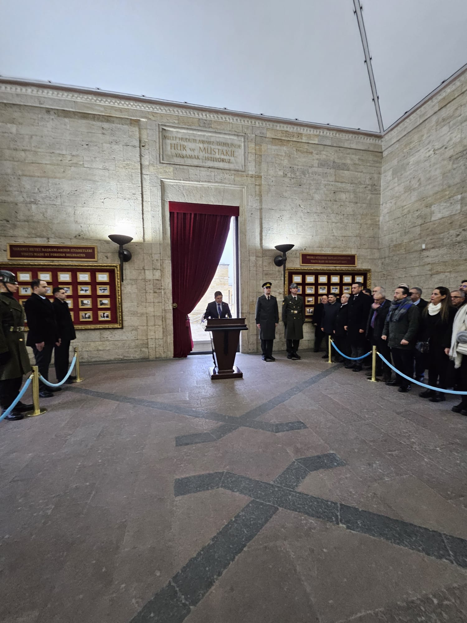 Ziyaret, saygı duruşu ve mozoleye çelenk bırakılmasının ardından hatıra fotoğrafı çekimi ile sona erdi.