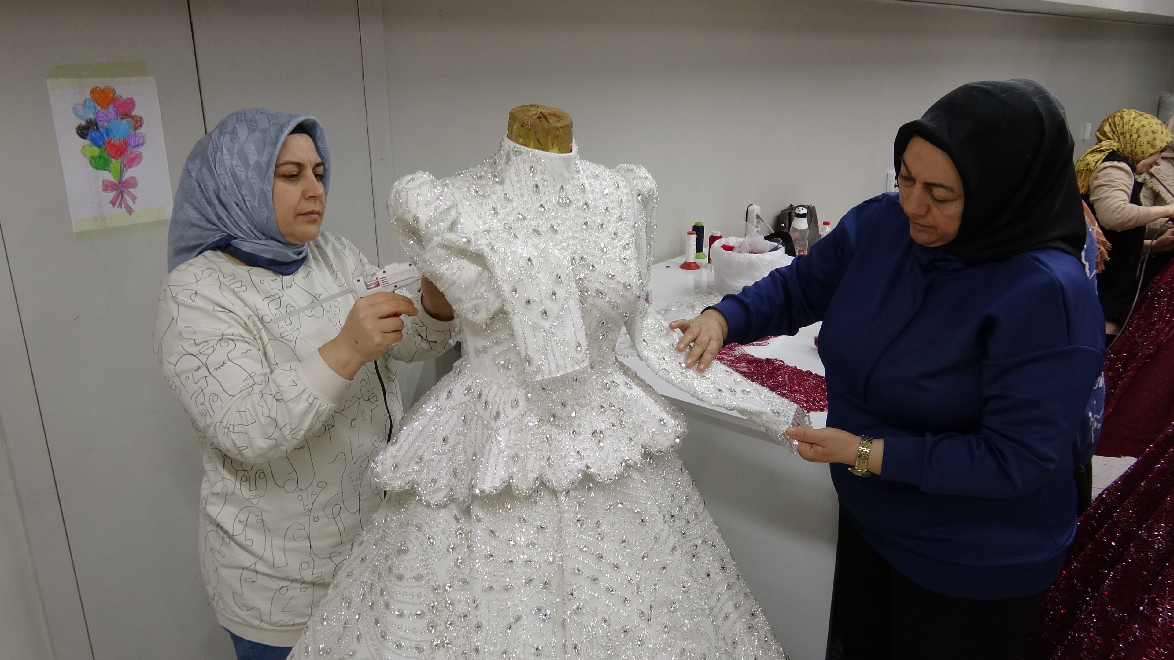 Evli ve 3 çocuk annesi 48 yaşındaki Nesrin Solmaz, işinde kendini iyice geliştirdikten sonra hurdacıdan aldığı dikiş makinesini tamir ettirip gelinlik ve abiye üretimine başladı. Kısa sürede işleri artınca kızları ile üretime devam eden Solmaz, daha sonra 4 kişiyi istihdam etti. Kiraladığı gelinlik ile iş hayatına atılan ve hurdacıdan aldığı dikiş makinesi ile üretime başlayan Solmaz, şimdi kendisine ait iş yerinde gelinlik, abiye, nişanlık ve kaftan üretiyor.