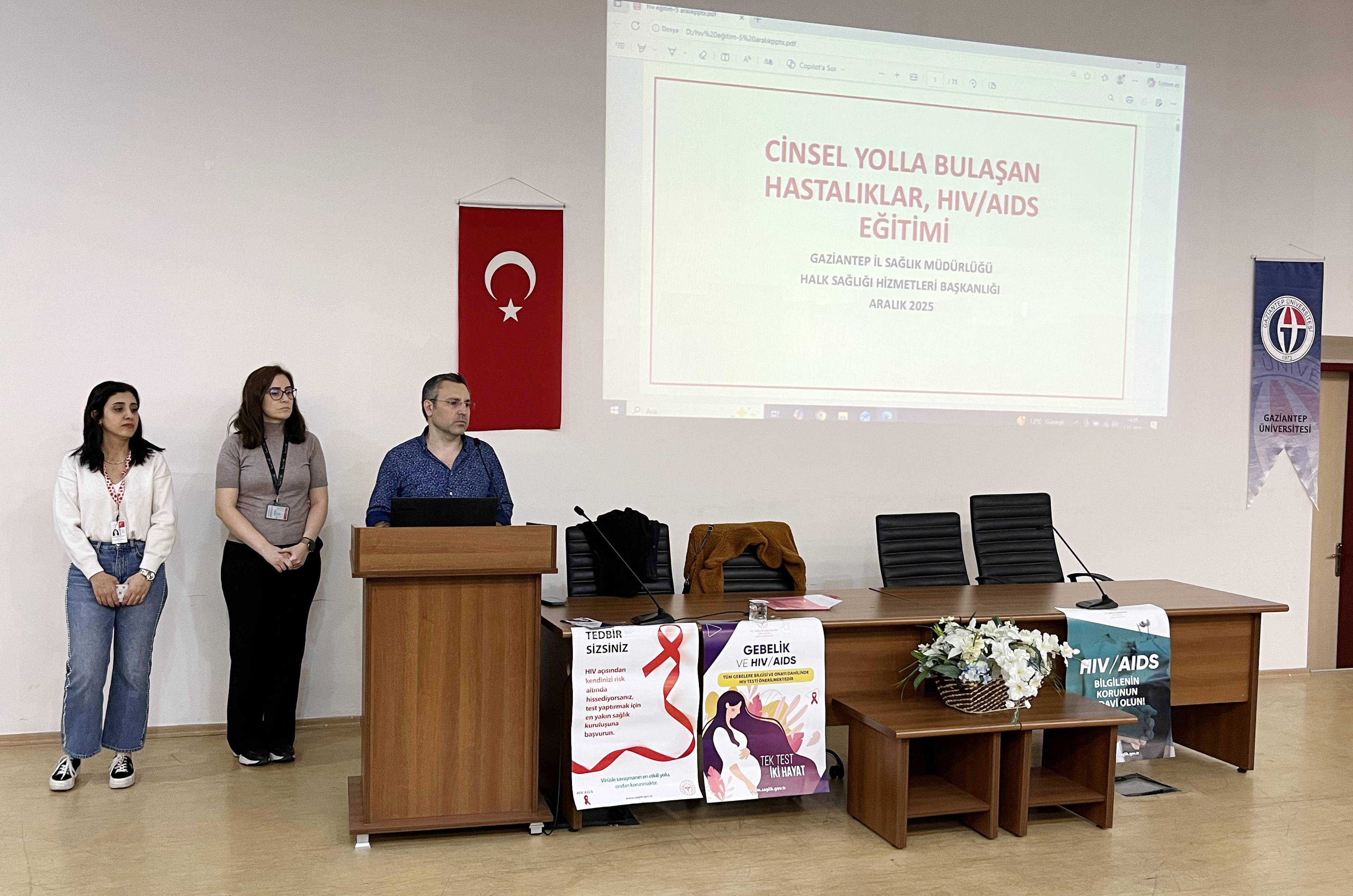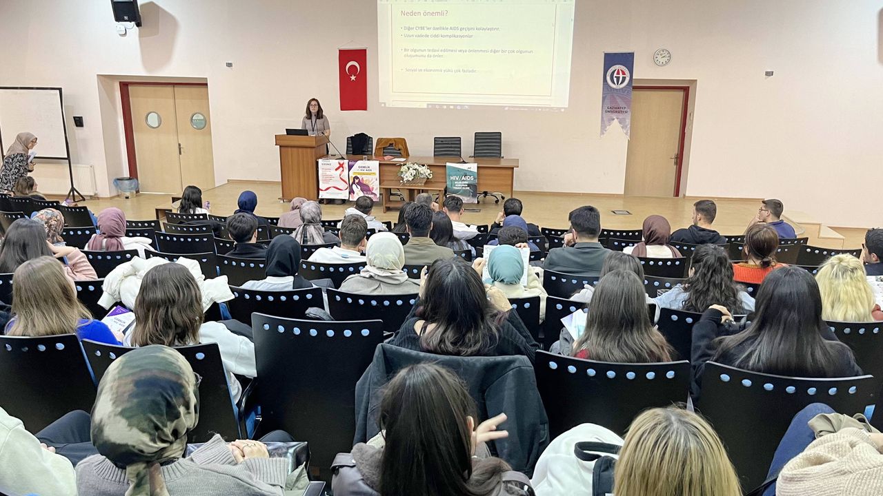 Etkinlik, Gaziantep İl Sağlık Müdürlüğü Bulaşıcı Hastalıklar Birimi Sorumlusu Dr. Hanife Uzar tarafından verilen eğitimle devam etti. Dr. Uzar, HIV/AIDS epidemisini durdurmanın en etkili yolunun hastalığın yayılımını azaltmak olduğunu belirterek, kişisel korunma önlemlerinin önemine vurgu yaptı. Etkinlikte, AIDS’in ortaya çıkışı, nasıl bulaştığı ve bulaşmadığı, toplumda görülme sıklığı ile korunma yöntemleri ve dikkat edilmesi gereken hususlar hakkında da kapsamlı bilgi paylaşımı yapıldı. Farkındalığın artırılması için yaş grupları, sosyoekonomik düzey ve kültürel yapılar dikkate alınarak hazırlanan eğitim programlarının gençler açısından kritik öneme sahip olduğunun altı çizildi.