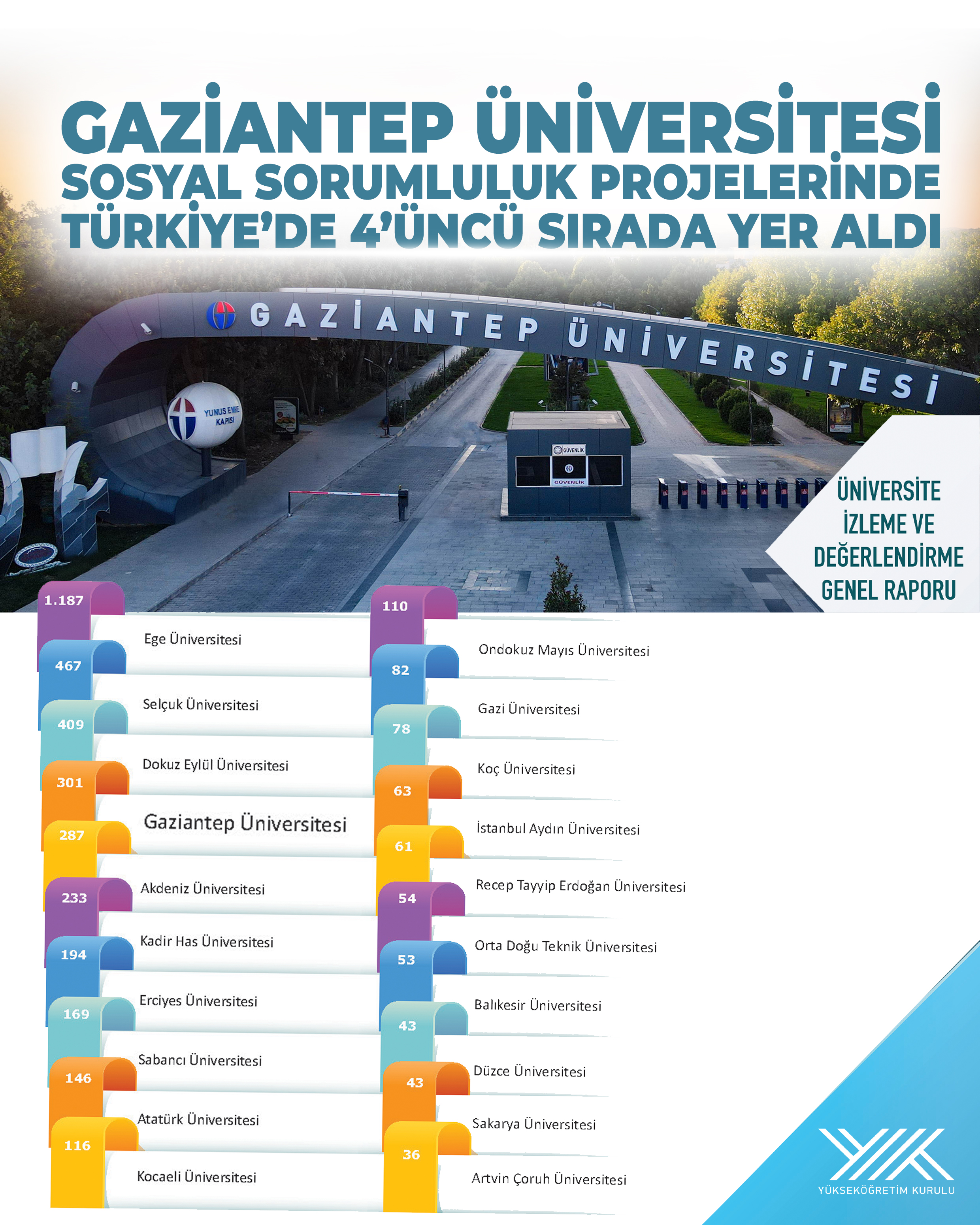 Raporda, üniversitelerin geçmiş yıllara ait toplumsal katkı odaklı proje verileri dikkate alınarak yapılan değerlendirmede GAÜN’ün 287 sosyal sorumluluk projesi yürüttüğü belirtildi. Bu kapsamda GAÜN, sosyal sorumluluk alanındaki proje üretkenliğiyle üst sıralarda yer alarak dikkat çekti.