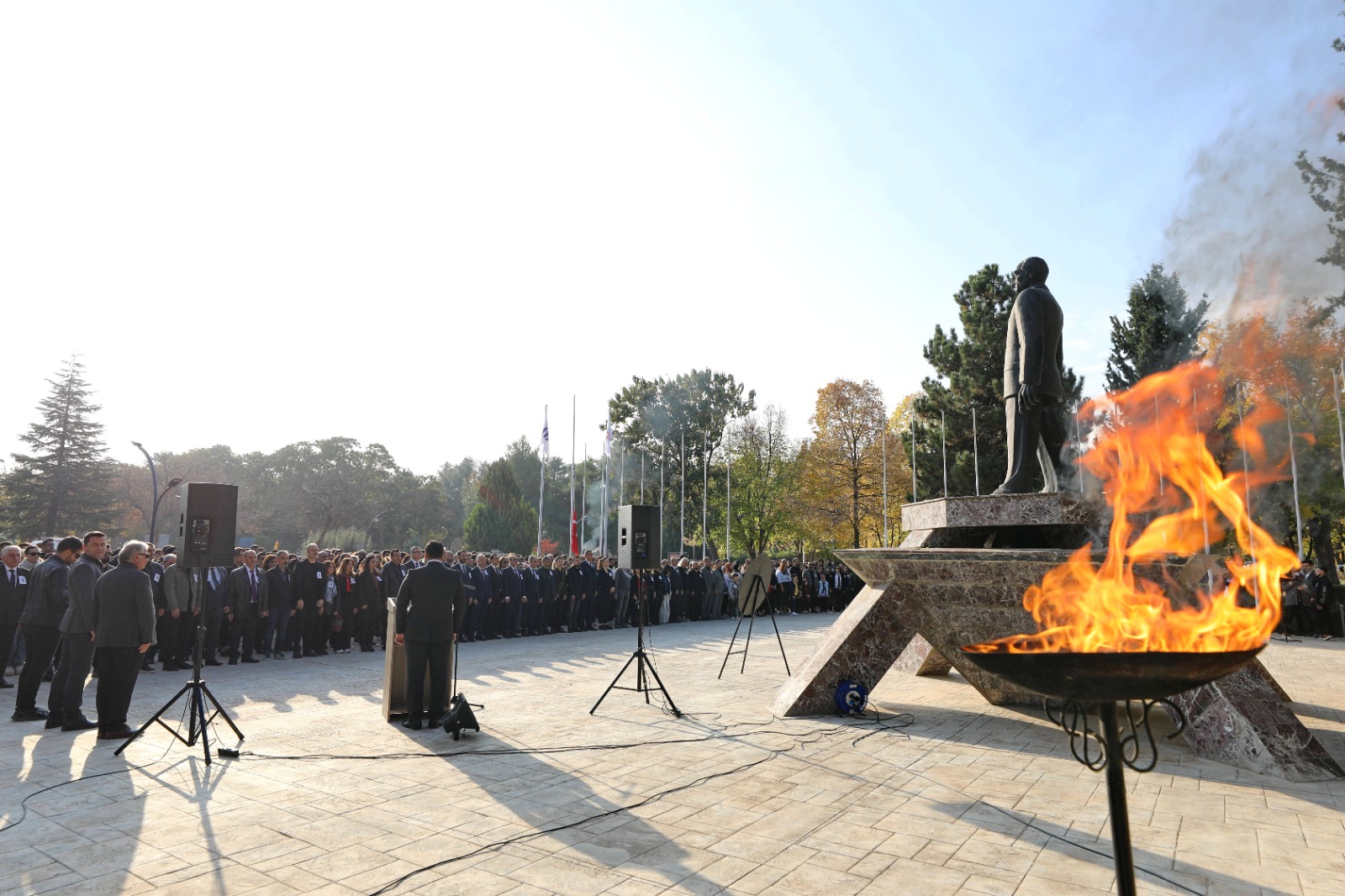 Büyük Atatürk’ün huzurunda bir kez daha onu rahmet ve minnetle andıklarını belirten Doç. Dr. Yunus Emre Tansü, “Onun ilke, inkılap ve düşüncelerinin ışığında, Türk milletinin muasır medeniyet seviyesinin üzerine çıkma hedefi doğrultusunda GAÜN’lü olmanın gururunu yaşıyoruz. 57 yıllık kısa ömründe, ‘hasta adam’ olarak nitelendirilen bir ülkeden modern, bağımsız bir Türkiye inşa eden büyük bir liderdi. Atatürk, 21. yüzyılda ‘Türkiye Yüzyılı’nı kurmayı hedefleyen ve yerli sanayisiyle güçlü bir ülke inşa etmemizin temellerini atan liderdir.” şeklinde konuştu.