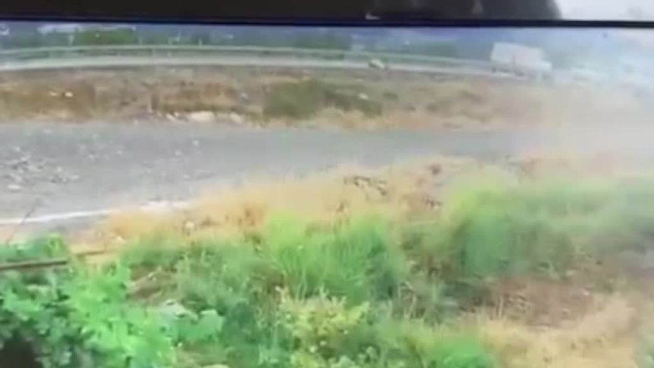 Öte yandan kaza anı, çevredeki bir iş yerinin güvenlik kamerasınca kaydedildi.