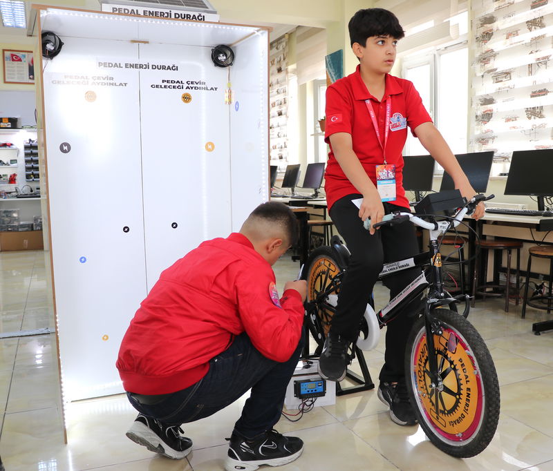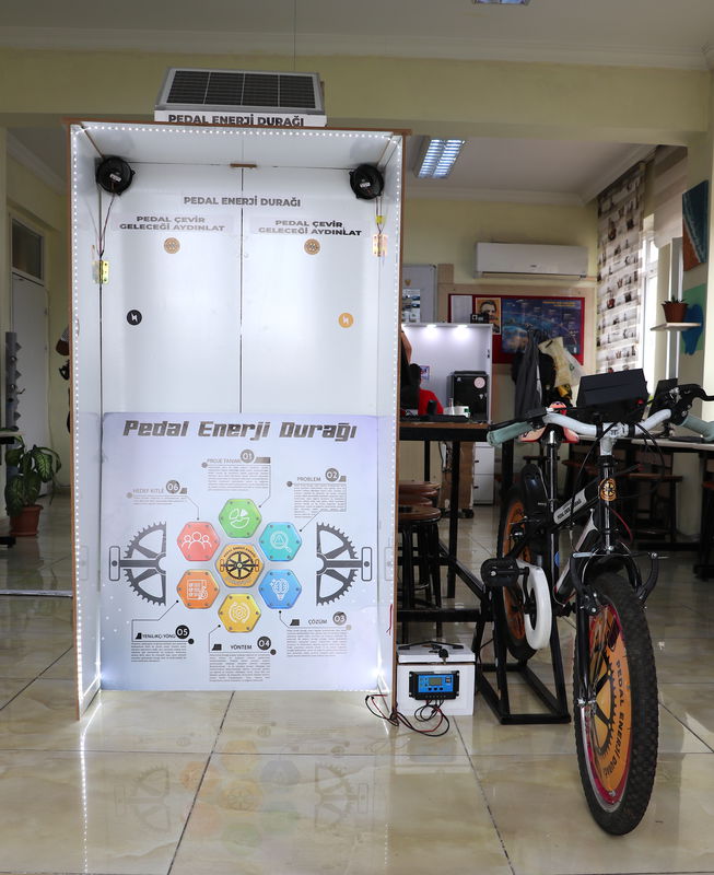 Söz konusu projeyle bu yıl İstanbul'da düzenlenen TEKNOFEST'te finale kaldıklarını ifade eden Güneş, "Bizler bu bisikletleri otobüs duraklarınına, alışveriş merkezleri ve sınıfların koridorlarına koyacağız. Pedal çevirme süresince elektrik üretilecek. Bu üretilen elektrik ile sınıflar, otobüs durakları ve alışveriş merkezlerinin aydınlatmasında kullanılabilecek." ifadesini kullandı.