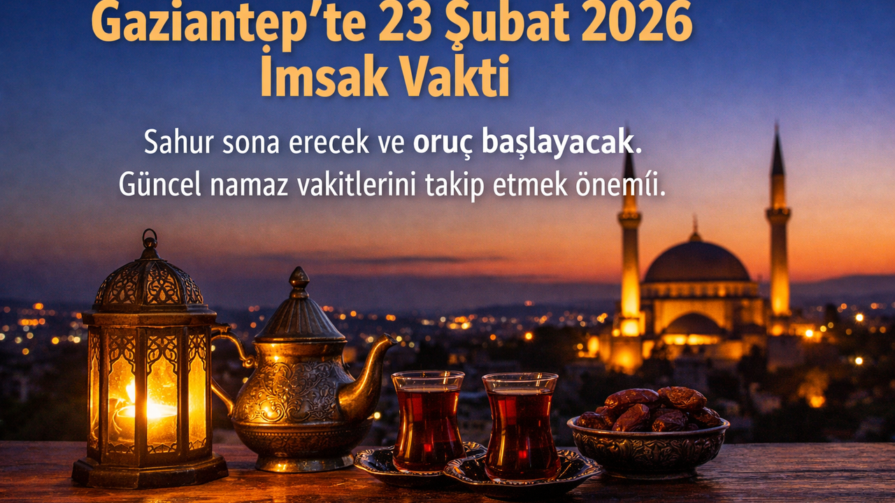 Gaziantep için 23 Şubat 2026 tarihi, Ramazan ayının 6. günü olarak takvimlerde yer alıyor. Bu tarihte imsak (oruç için başlangıç) saati ve diğer namaz vakitleri, Diyanet ve yerel namaz takvimlerine göre hazırlandı.