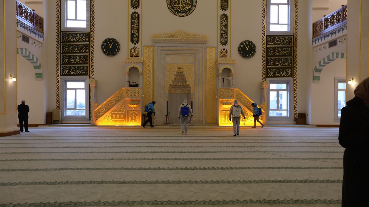Vatandaşların ibadetlerini hijyenik, sağlıklı ve ferah bir ortamda gerçekleştirebilmesi amacıyla yürütülen çalışmalar kapsamında camiler detaylı şekilde temizleniyor, dezenfekte ediliyor ve gül suyu ile yıkanarak manevi atmosfere uygun bir ortam hazırlandı.