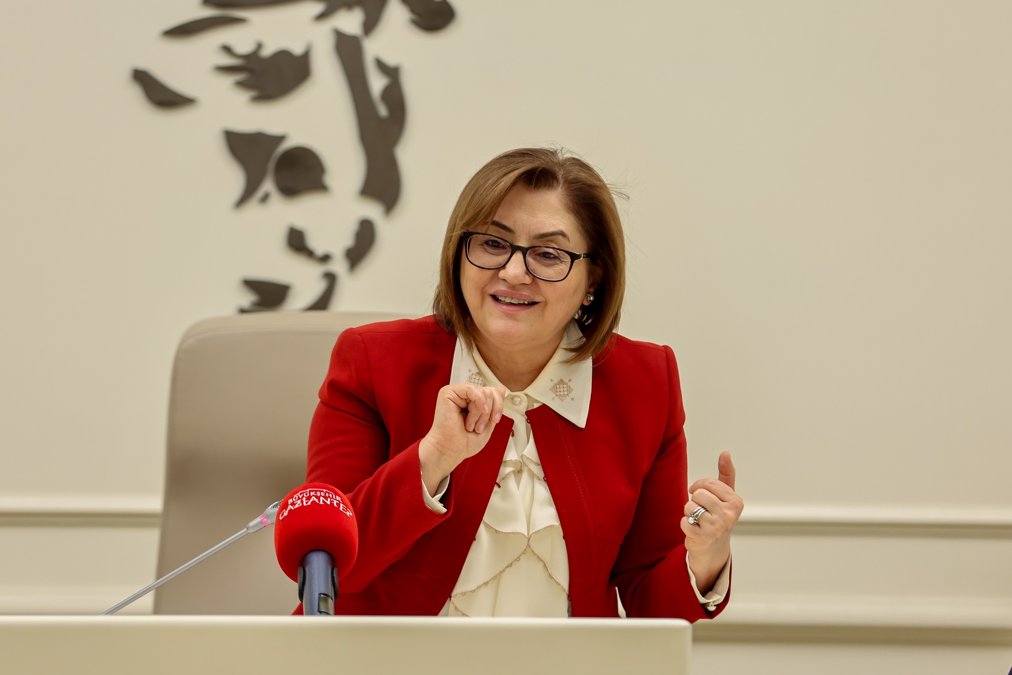 Gaziantep Büyükşehir Belediye Başkanı Fatma Şahin, programda yaptığı konuşmada dünyanın karşı karşıya olduğu sorunlara dikkat çekerek, Birleşmiş Milletler Genel Sekreteri Antonio Guterres’in gençlerle yaptığı toplantıda verdiği mesajlara değindi. Başkan Şahin, Guterres’in “Önce birbirimizle savaştık, Birinci ve İkinci Dünya Savaşları yaşandı. Bu savaşlar bir daha olmasın diye Birleşmiş Milletler ve Avrupa Birliği kuruldu ancak bugün hala savaşları durduramadık. Yetmedi, doğayla da savaştık. Geldiğimiz noktada gençlerin bakış açısına her zamankinden daha fazla ihtiyacımız var” sözlerinin altına imza attığını söyledi.