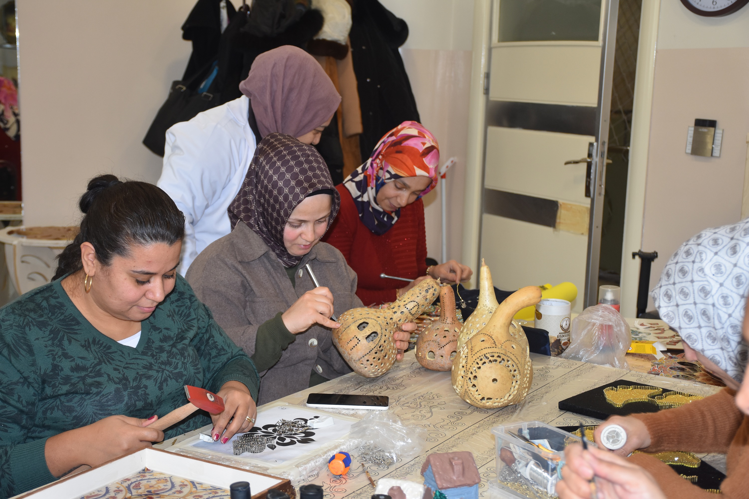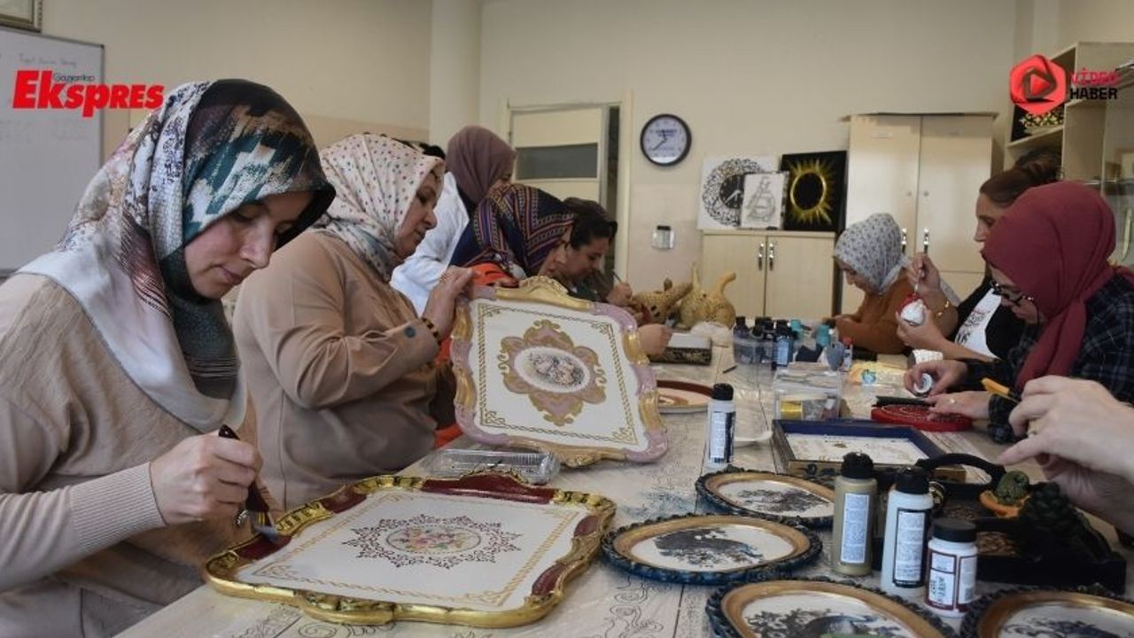 Şahinbey Belediyesi’ne bağlı Özgecan Hanımlar Yüzme Havuzu, Spor ve Kültür Merkezi’nde açılan Filografi, Ahşap Boyama ve Kâğıt Rölyef Kurslarında eğitim alan ev hanımları; tablolar, tepsiler, dekoratif ahşap ürünler ve çeşitli hediyelik eşyalar hazırlayarak el becerilerini geliştiriyor. Katılımcılar, öğrendikleri tekniklerle yalnızca estetik değeri olan ürünler ortaya koymakla kalmıyor, aynı zamanda kendi evlerinde kullanabilecekleri aksesuarları da üretiyor.