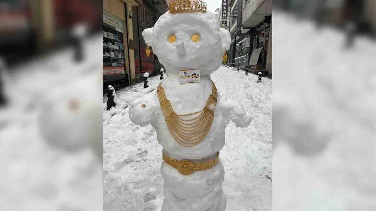 Gaziantep'in Nizip ilçesinde ise bir kuyumcu, kar yağışı nedeniyle müşteri gelmeyince iş yerinin önüne yaptığı kardan gelini altınlarla süsledi.