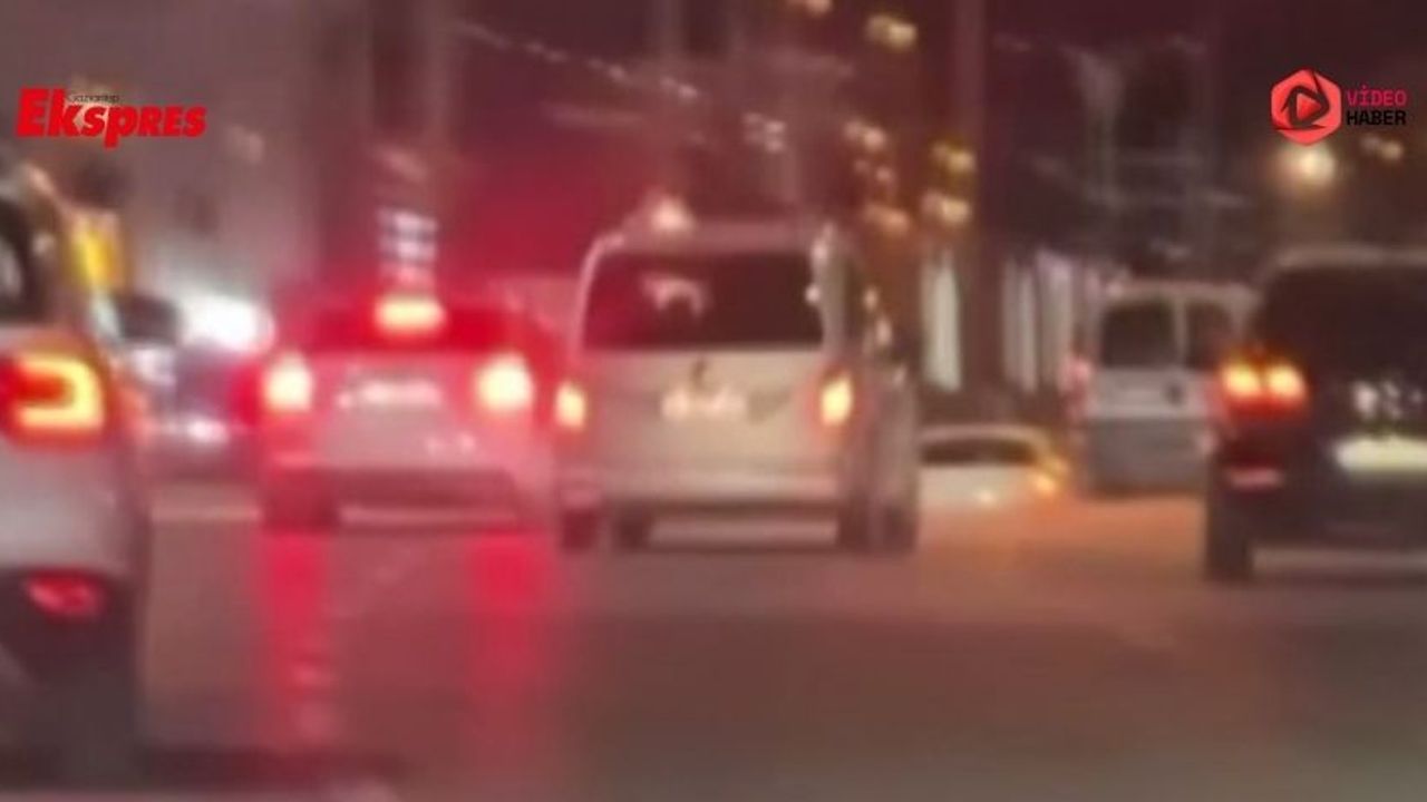 Aracın trafikte tehlike saçtığı anlar ise cep telefonu kamerasına yansıdı.