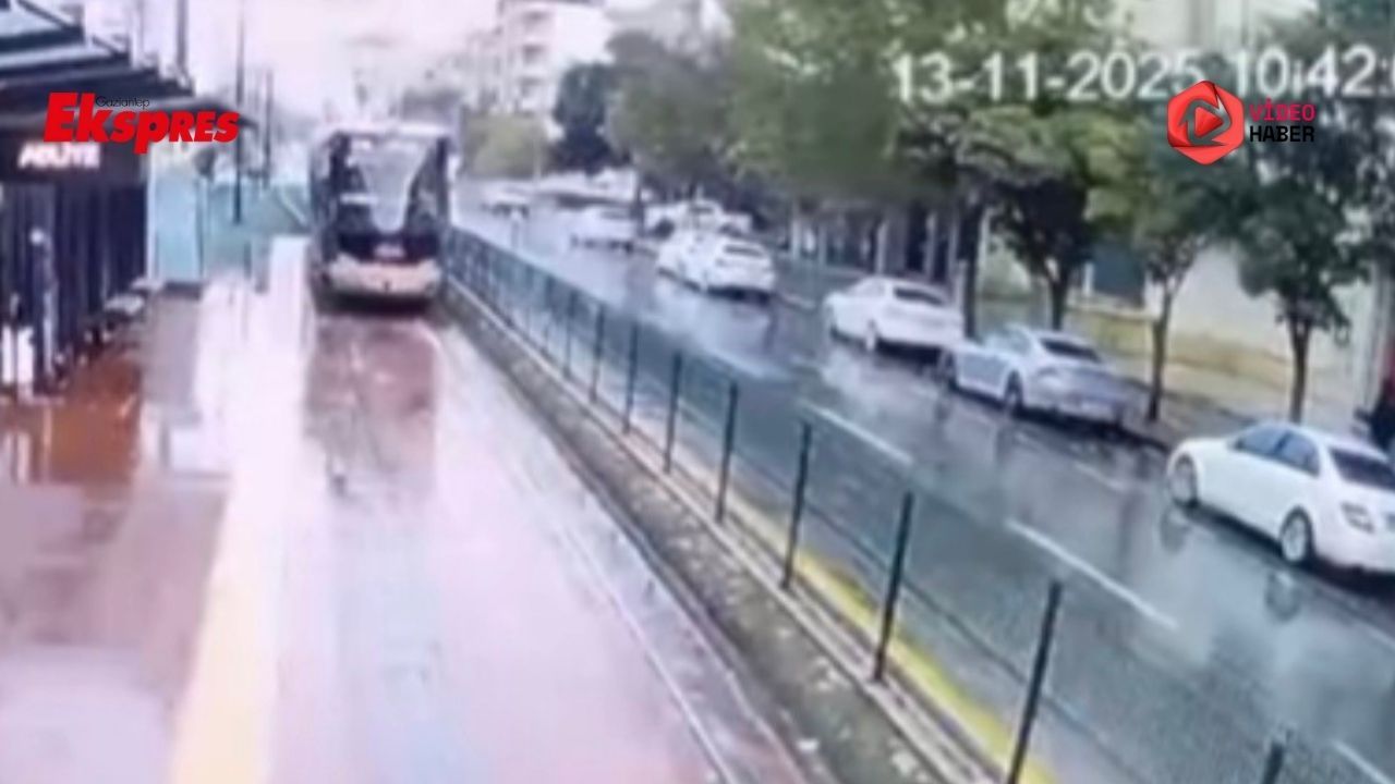 Hareket halindeki tramvaya yıldırım isabet etme anları ise duraktaki güvenlik kameralarına yansıdı. Görüntüde, yolcu indir-bindir yaptıktan sonra güzergahında hareket etmeye başlayan tramvaya yıldırım isabet etme anları yer aldı. Görüntülerin devamında tramvaydan dumanların yükselmesi ise dikkat çekti.