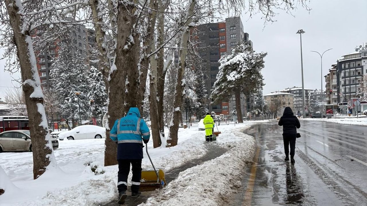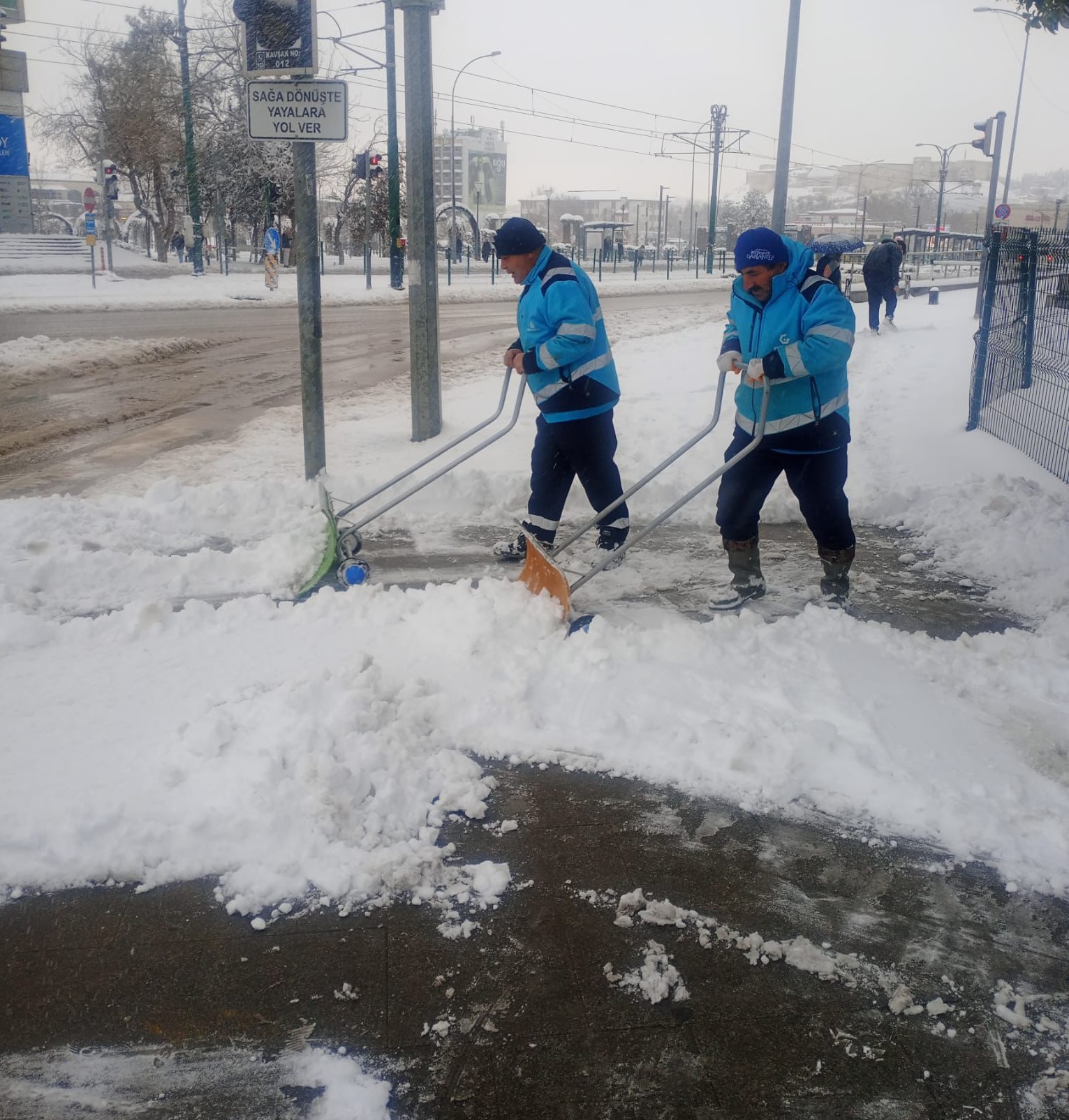 Büyükşehir ekipleri, ana arterlerde trafik güvenliğinin sağlanmasına yönelik yol temizleme çalışmalarını yürütürken; çarşı merkezleri, hastaneler, toplu kullanım alanları ve yaya yoğunluğunun yüksek olduğu bölgelerde kaldırımlarda biriken karları temizliyor. Yapılan çalışmalarla yaya ulaşımının güvenli şekilde devam etmesi hedefleniyor.