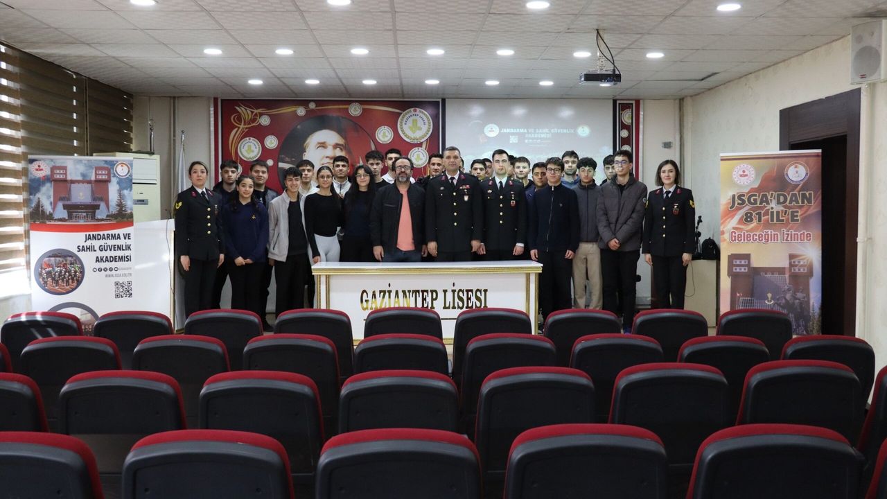 Gaziantep İl Jandarma Komutanlığı ekipleri, il merkezinde ve ilçelerdeki öğrencilere yönelik Jandarma ve Sahil Güvenlik Akademisi (JSGA) tanıtım faaliyeti icra etti. "81 İl'e Geleceğin İzinde" projesi çerçevesindeki faaliyetle Gaziantep Lisesi ve Gaziantep Borsa İstanbul Anadolu Lisesi ziyaret edilerek öğretmen ve öğrencilere JSGA bünyesinde verilen askeri ve akademik eğitimler, disiplin anlayışı, sosyal imkânlar ve mezuniyet sonrası görev alanları ayrıntılı şekilde anlatıldı.