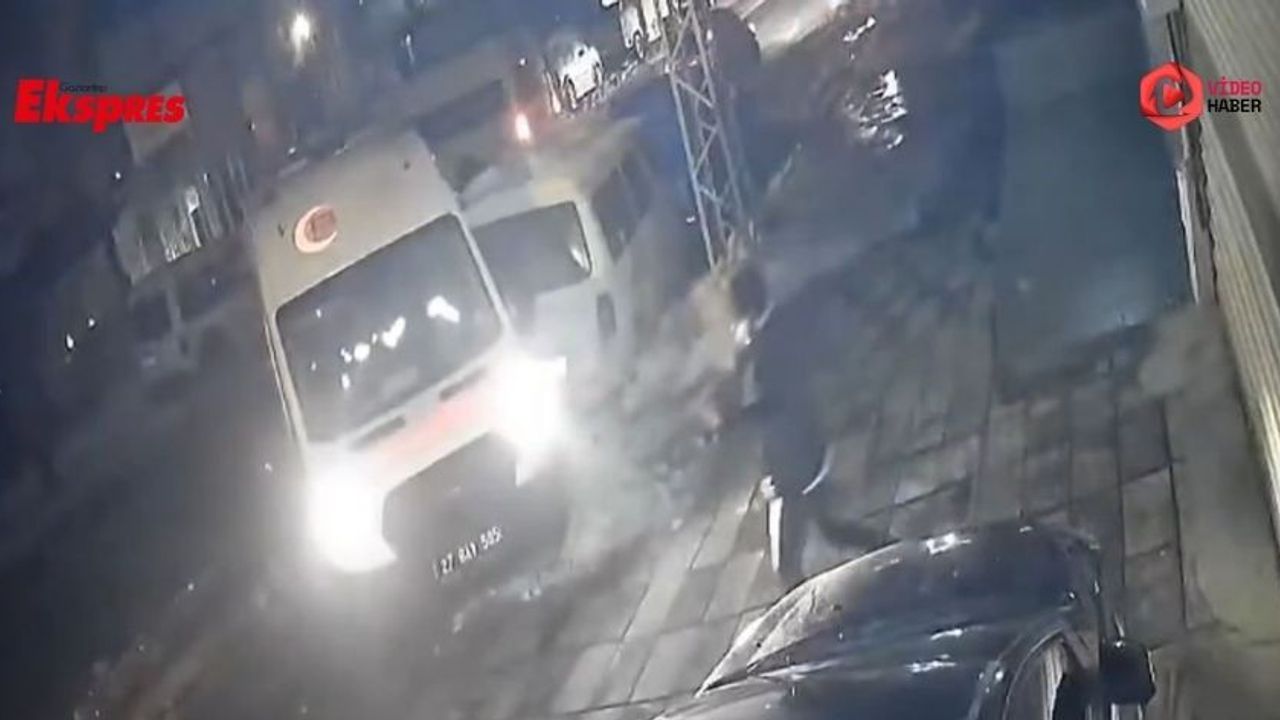 İşçi minibüsü de kayan ambulansa arkadan çarptı. Araçların ağır hasar aldığı kazada şans eseri can kaybı ya da yaralanma yaşanmazken, kaza bir iş yerinin güvenlik kamerasına yansıdı.
