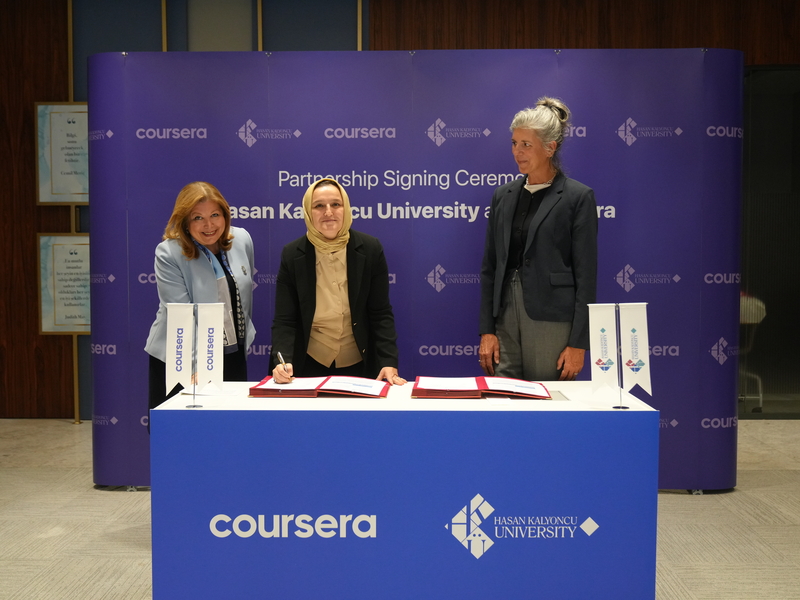 Coursera ile yapılan iş birliğinin üniversitenin uluslararası eğitimdeki konumunu daha da güçlendireceğini vurgulayan HKÜ Rektör Vekili Prof. Dr. Gül Rengin Küçükerdoğan, “Hasan Kalyoncu Üniversitesi olarak çağın gerekliliklerine uygun, yenilikçi ve dijital öğrenme odaklı bir vizyonla ilerliyoruz. Coursera ile yaptığımız bu iş birliği, öğrencilerimizin küresel ölçekte rekabet etmelerine ve mikro yeterlilikler aracılığıyla mesleki beceriler kazanmalarını sağlayacaktır. HKÜ, mezunlarının istihdam edilebilirliğini artırmayı, yaşam boyu öğrenmeyi teşvik etmeyi ve uluslararası eğitimde etkin bir aktör olmayı hedeflemiş bir üniversitedir. Coursera ile yapılan bu iş birliği, bu vizyonun somut bir göstergesidir” dedi.