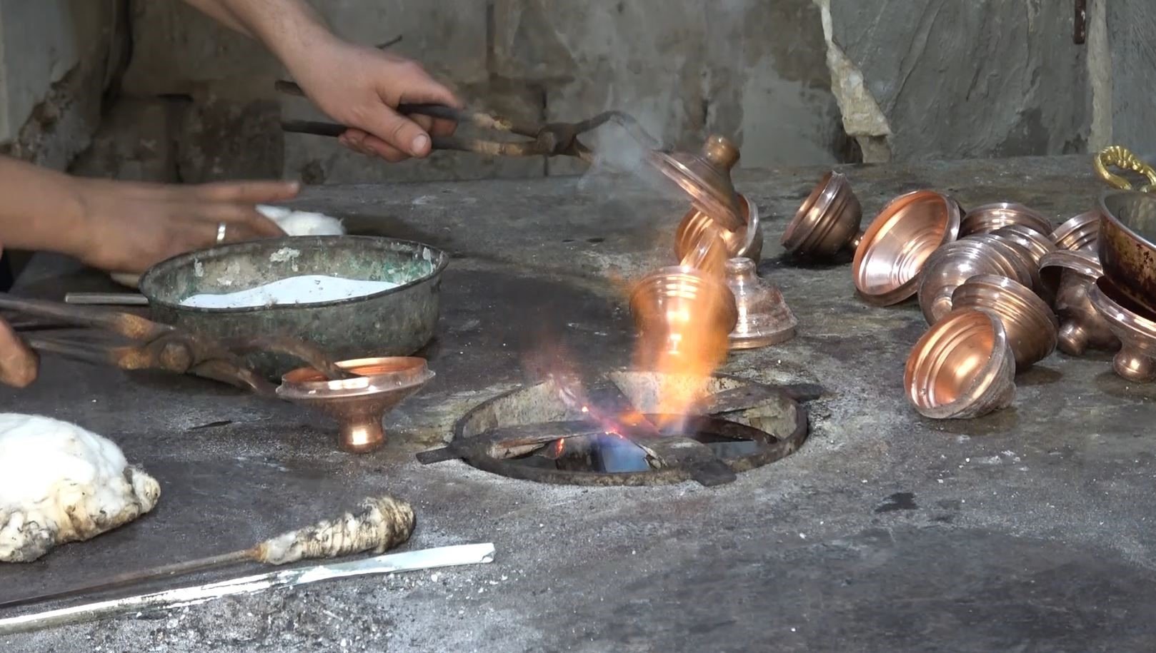 Kalaycı ustası olan babalarından öğrendikleri kalaycılığı aynı dükkanda çalışarak sürdürmeye devam eden 33 yaşındaki Ökkeş ve Ramazan Toprak, baba mesleğini sürdürmenin gururunu yaşıyor. Babalarından miras kalan ocakta, zamanın aşındıramadığı el emeğiyle bakır mutfak eşyalarını bin bir emek ve zahmetle kalaylayan kardeşler, baba mesleğini yaşatmaya çalışıyor. Günümüzün teknolojisine rağmen kalaycılık mesleğini omuz omuza vererek sürdüren kardeşler, 26 yıldır sürdürdükleri baba mesleği sayesinde her birinin aylığı 80 bin TL'ye geliyor. Ailelerinin geçimini baba mesleğiyle sağlayan kardeşlerden Ramazan Toprak 2 çocuk babası, Ökkeş Toprak ise 3 çocuk babası olarak ekmek mücadelesi veriyor.