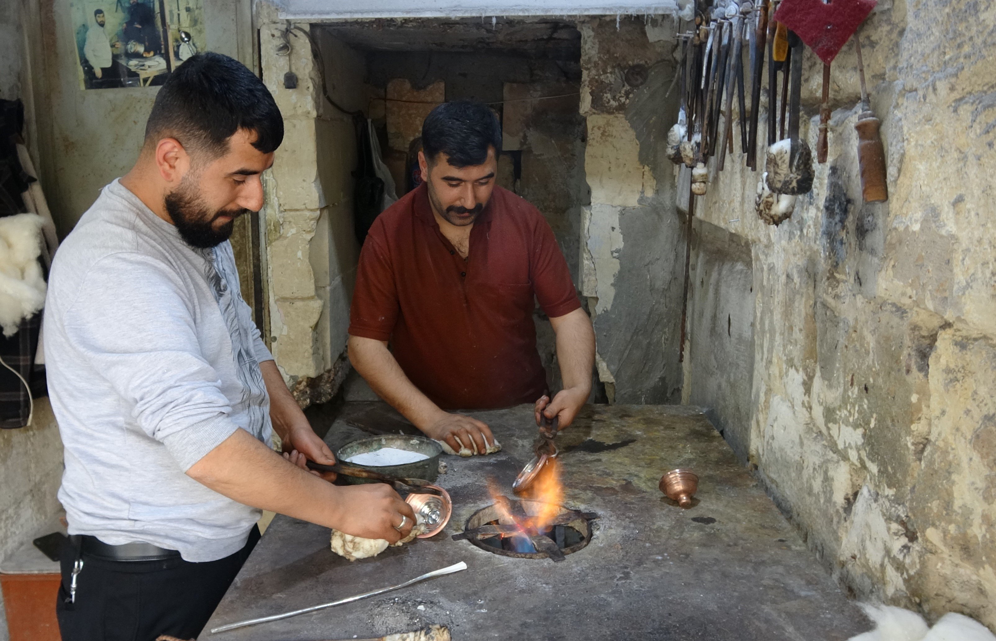 Kalaycılık yapan babalarının yanında 7 yaşında mesleği öğrenmeye başlayan ve zamanla kendilerini geliştiren kardeşler, kentin aranan ustalarından oldu. Müşterilerinin getirdikleri mutfak eşyalarını geleneksel yöntemlerle kalaylayarak yeni görünüme kavuşturan kardeşler, mesleklerini severek yapıyor. Sabahın erken saatlerinde tarihi Gaziantep Kalesinin karşısında bulunan iş yerini açan ve gün boyunca yoğun tempoyla mesai yapan kardeşler, unutulmaya yüz tutmuş baba yadigarı meslekte yetiştirecek çırak bulamamaktan yakınıyor.