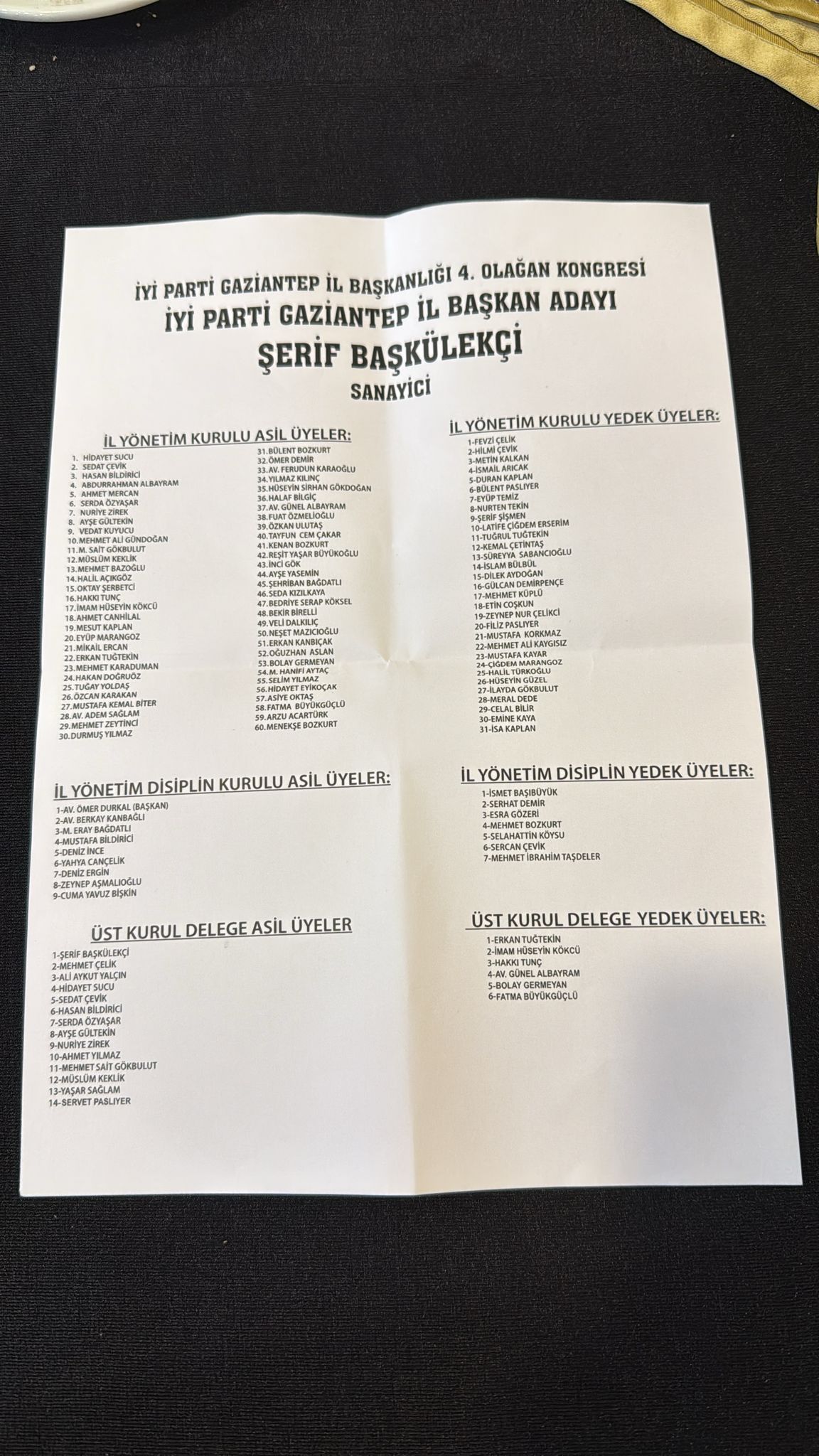 İYİ Parti Gaziantep İl Başkanlığı’nın 4. Olağan Kongresisine partililer, delegeler ve vatandaşlar katıldı. Gaziantep Milletvekili Mehmet Mustafa Gürban’ın da katıldığı kongre bugün tamamlandı.