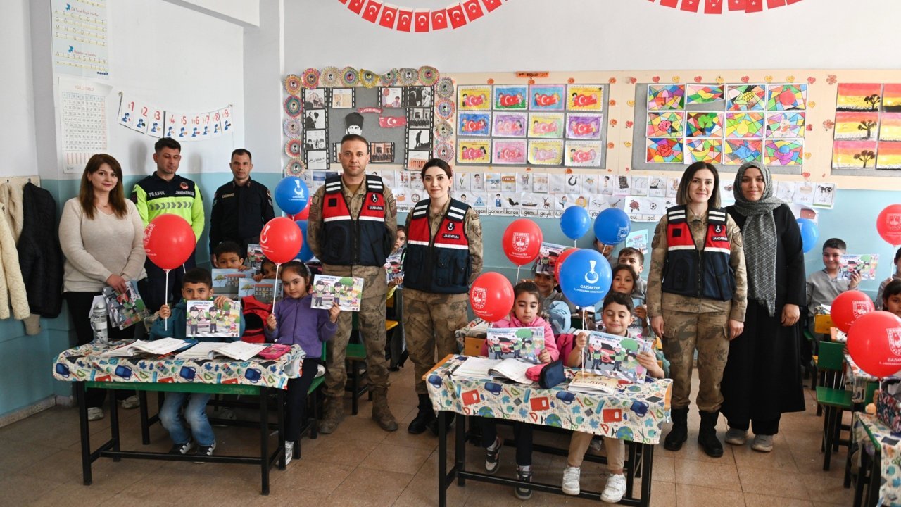 Gaziantep İl Jandarma Komutanlığı ekipleri, Oğuzeli ilçesinde 2 ilkokula sürpriz ziyarette bulunarak öğrencilerin 23 Nisan Ulusal Egemenlik ve Çocuk Bayramı'nı kutladı.