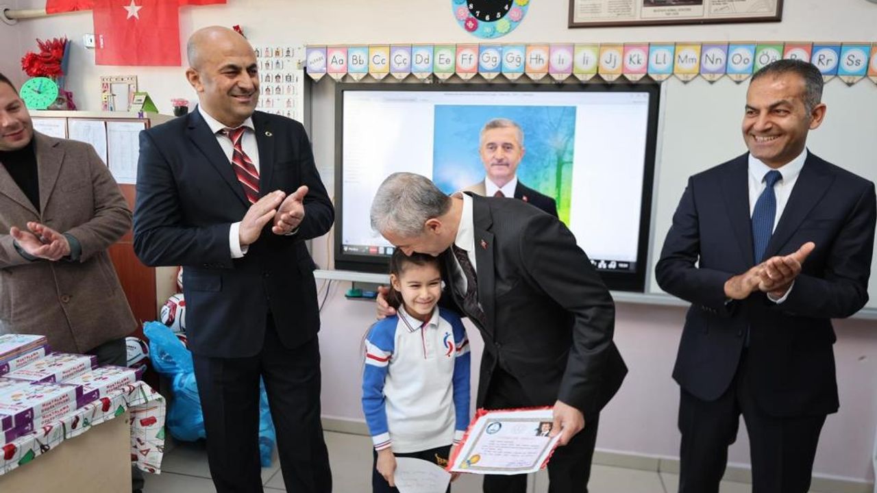 Şahinbey Belediyesi, öğrencilerin sömestr tatilini daha verimli geçirmeleri amacıyla eğitime ve spora büyük destek sağladı. İlçe genelinde ilkokul 1, 2, 3 ve 4’üncü sınıflarda öğrenim gören öğrenciler için 1 milyon 150 bin adet kitap dağıtılırken, çocukların tatilde spor yapmaları ve fiziksel gelişimlerine katkı sunulması amacıyla top hediye edildi. Tahmazoğlu hediyelerini vermek için gittiği Süleyman Şah İlkokulunda öğrencilerin kendisi için hazırladığı karne ile karşılaştı.