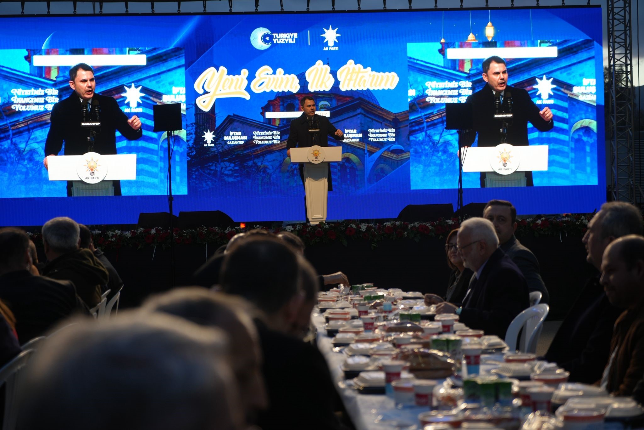 Bir dizi program için Gaziantep'te bulunan Çevre, Şehircilik ve İklim Değişikliği Bakanı Murat Kurum, "500 Bin Sosyal Konut" projesi çerçevesinde "Ev Sahibi Türkiye" kura çekim töreni sonrası Nurdağı ilçesindeki "Yeni Evim İlk İftarım" programına katılarak depremzede vatandaşlarla iftarda bir araya geldi. İftarda konuşan Çevre, Şehircilik ve İklim Değişikliği Bakanı Murat Kurum, deprem bölgesinde yapılan çalışmalar ve sosyal konut çalışmaları ile ilgili verileri paylaştı.