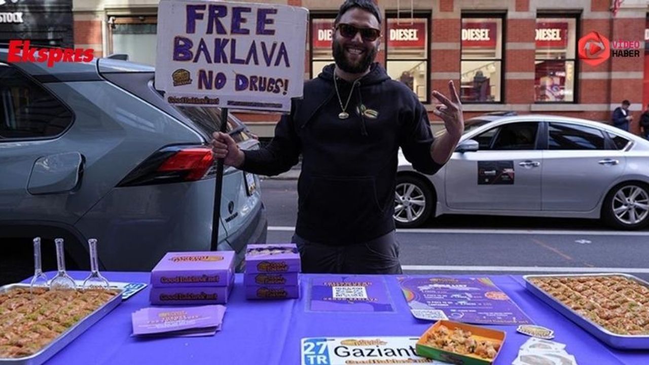 Türkiye'den getirdiği baklavaları tanıtmak için yakaladığı hiçbir fırsatı kaçırmayan Donk, New York'ta tepsiyle dolaştırdığı Türk tatlısını Amerikalılara bolca ikram ediyor.