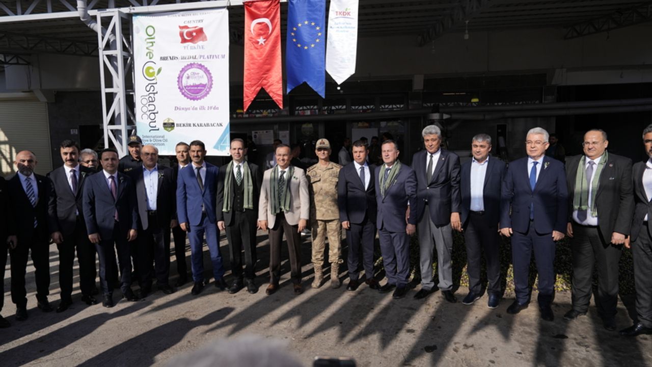 Zeytin Festivali açılışı öncesi protokol, Karabacak Zeytinyağı’nda sembolik sıkım gerçekleştirdi