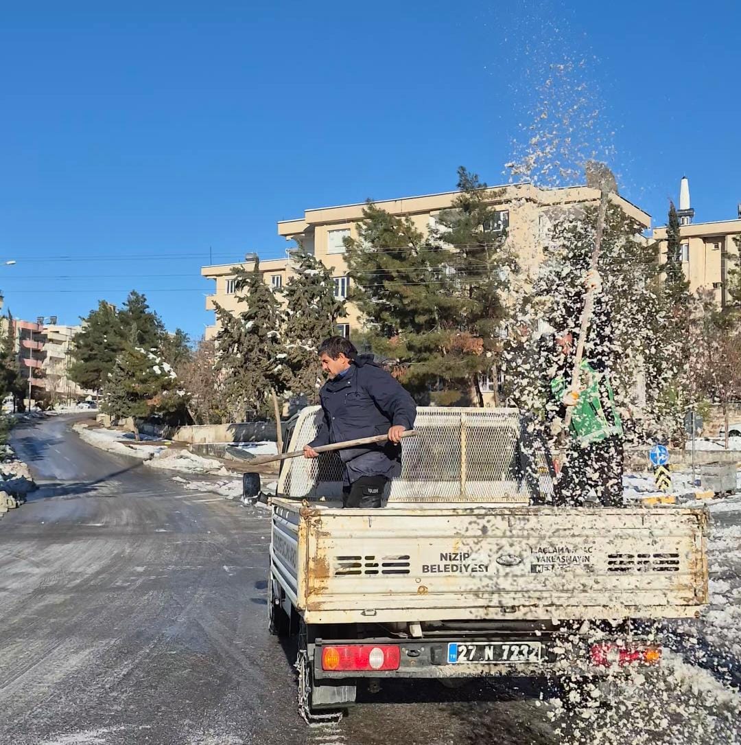 Nizip genelinde kar yağışının yaşamı olumsuz etkilememesi için teyakkuza geçen belediye ekipleri, çalışmaları iki koldan yürütüyor. Karla mücadele ekipleri, ilçe merkezindeki ana arter ve sokaklarda buzlanma riskine karşı yoğun tuzlama ve küreme faaliyeti gerçekleştirirken; iş makineleri ise kar nedeniyle ulaşımın aksadığı kırsal mahalle yollarına müdahale ediyor.