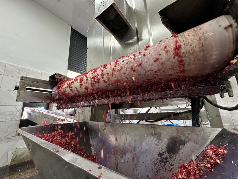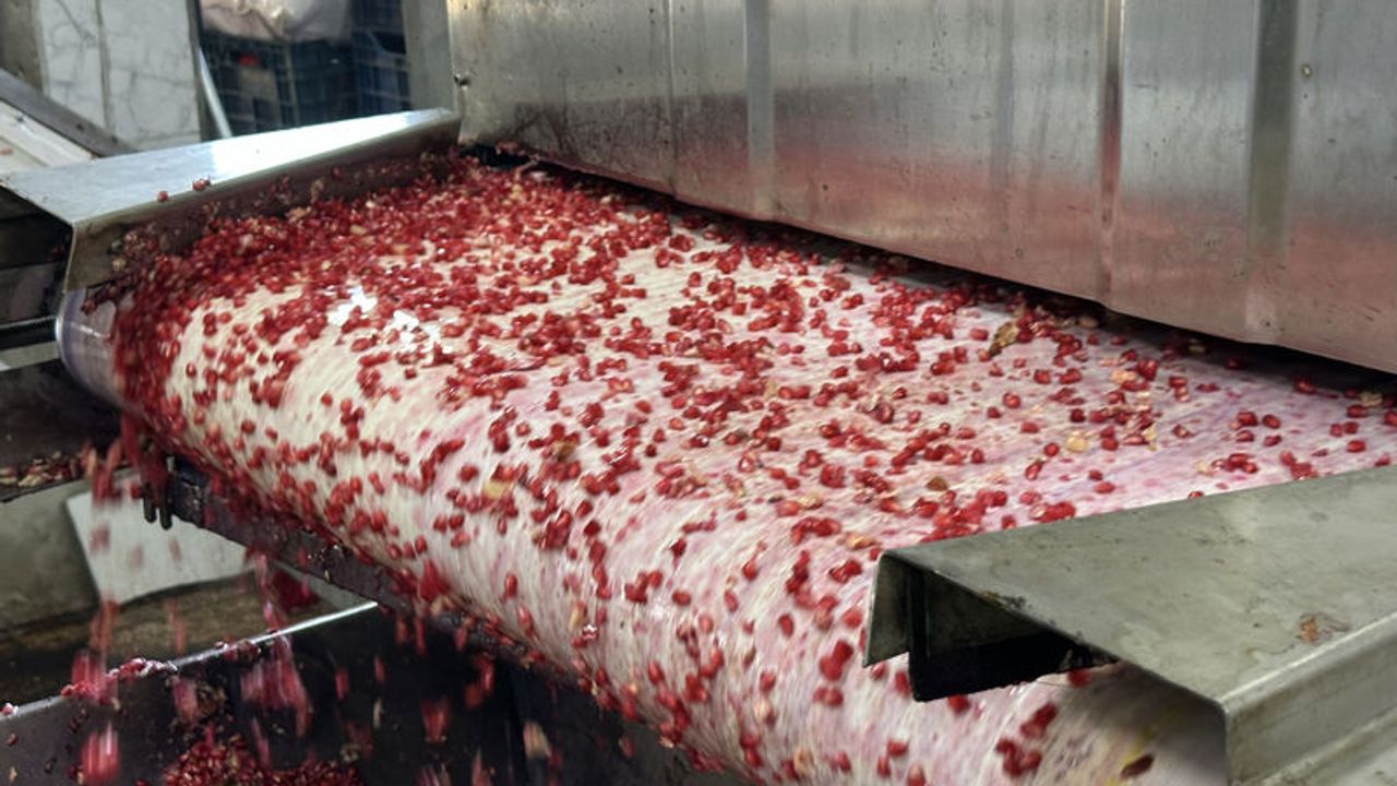 Oğuzeli'nde 15 bin dekar alanda yetiştirilen coğrafi işaretli lezzetlerden Oğuzeli narı, belediye tarafından yaptırılan tesiste el değmeden doğal olarak makinede hazırlanıyor.