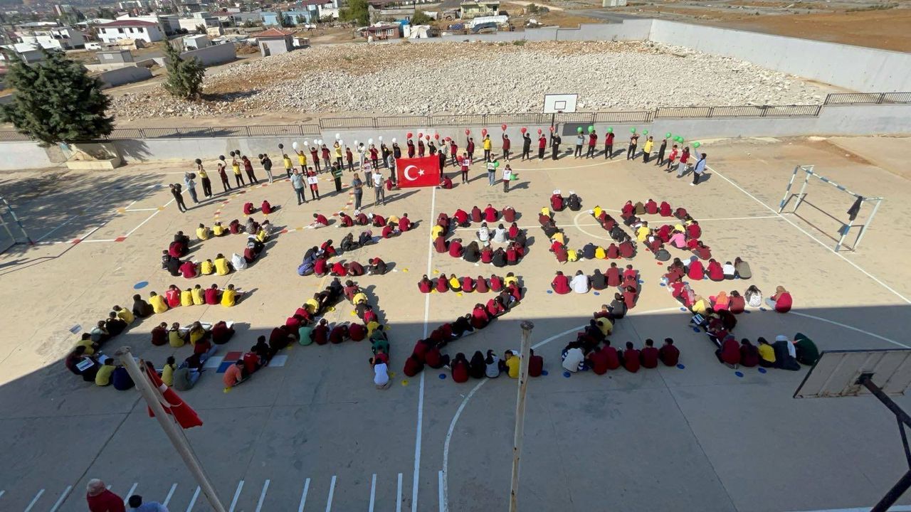 Gaziantep'in Araban ilçesindeki okullarda yapılan çeşitli etkinliklerle Filistin ve Gazze'ye destek mesajları verildi. Etkinlikler çerçevesinde, öğrenciler tarafından 'Filistin' yazılı canlı koreografi yapıldı.