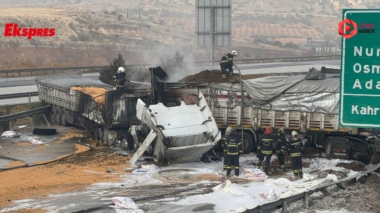Kaza, Tarsus-Adana-Gaziantep (TAG) Otoyolu Gaziantep batı gişeleri kesiminde meydana geldi. İddiaya göre, plakaları ve sürücülere öğrenemeyen mısır, un vs gübre yüklü 3 tırın karıştığı kaza sonrası yangın çıktı.