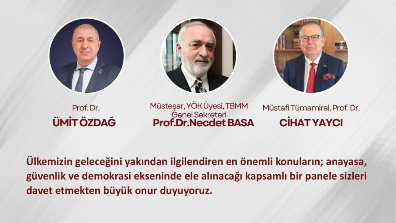 Panele, Prof. Dr. Ümit Özdağ, Prof. Dr. Cihat Yaycı ve Prof. Dr. Necdet Basa konuşmacı olarak katılacak. Akademisyenler, “Türkiye’nin Geleceği; Anayasa, Güvenlik ve Demokrasi” başlıkları altında değerlendirmelerde bulunacak.