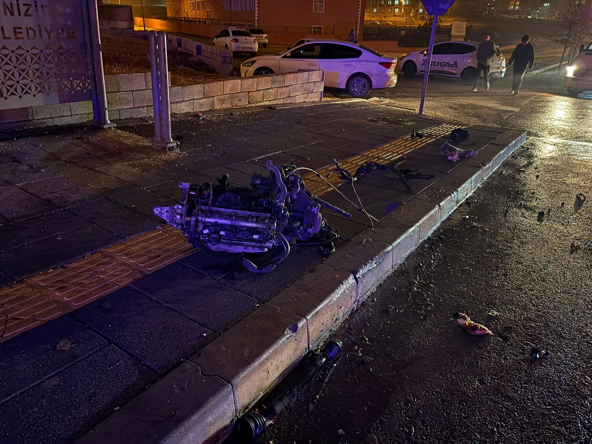 Otomobilin motoru yerinden çıkarak metrelerce savruldu