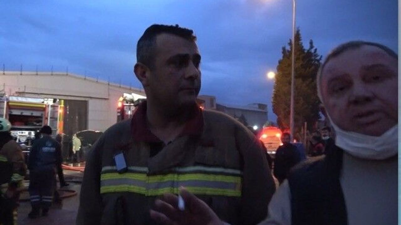 İtfaiye eri Üçok’a röportaj sırasında çalışanlar tarafından da müdahale edildi.