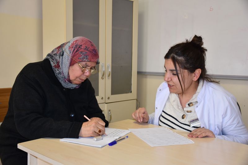 Kurs eğitmeni Tülay Balaban ise "Kursumuzda kadınlarımıza veya daha önce okula gitmemiş, daha sonra okuma-yazma öğrenmek isteyen kadınlarımıza okuma-yazma öğretiyoruz. Fatma teyze de 2-3 haftadır buraya geliyor. Biraz harfleri öğrenmeye başladı. Çok şükür azimli bir teyzemiz ve hatta ilk kursa geldiğinde Fatma teyzeyi görünce ben çok sevindim Bu yaşta kadınlarımızın okuma-yazmayı öğrenmeye çalışması bizim için çok güzel ve gurur vericidir. Özellikle yaşları büyük olan teyzelerimize özen gösteriyoruz. Biraz daha öğrenmeleri zor ama çok azimliler. Fatma teyze de çok güzel öğreniyor. Yavaş yavaş da öğrenecek inşallah. Okuma-yazmayı çok güzel öğreniyor. İlk 5-6 harfimizi öğrendi, öğrenmeye devam ediyoruz. Bize bu imkanı sağlayan Belediye Başkanımız Mehmet Tahmazoğlu'na teşekkür ediyoruz" diye konuştu.